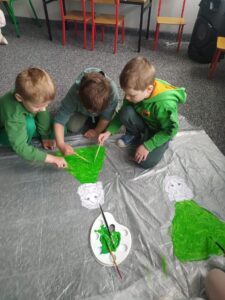 Dzieci nauczyły się piosenek, przyniosły emblematy wiosenne, a w naszych strojach dominował kolor zielony.