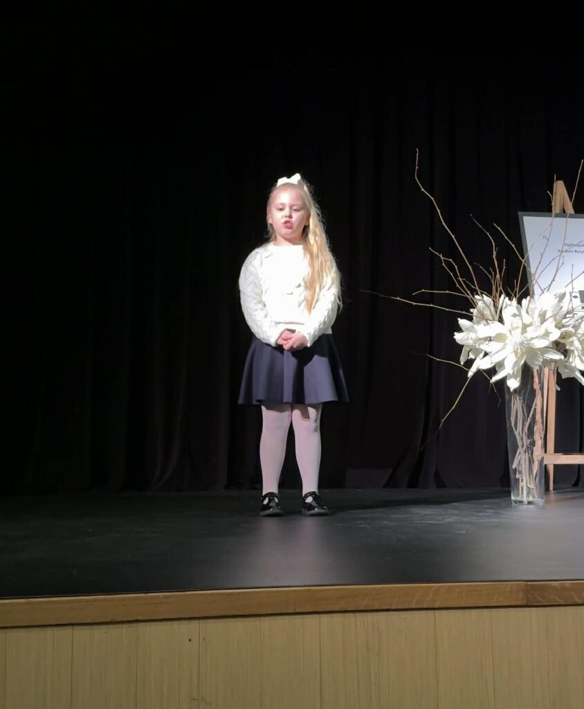 W związku z powyższym do kolejnego etapu konkursu zakwalifikowali się: Stanisław Senderowski z klasy IIIa, Blanka Pyrgiel z klasy II oraz Julia Pieczonka z klasy I. Talent recytatorski prezentowała również uczennica klasy VII – Maja Marsula. która otrzymała wyróżnienie.
