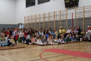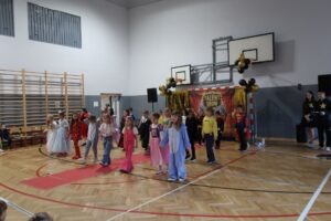 Kolejnym ważnym elementem wydarzenia był ,,Festiwal Talentów” . Na rozpoczęcie imprezy każda z klas przygotowała tematyczną prezentację strojów. Uczniowie w ciekawy i pomysłowy sposób przedstawiali wylosowane przez siebie zagadnienia – od tematów związanych z kosmosem, postaciami z bajek, postaciami historycznymi, superbohaterami po szalone fryzury, owoce i warzywa, zawody, flagi europejskie oraz epokę kamienia łupanego. Prezentacje były wzbogacone o podkłady muzyczne, układy taneczne, dekoracje oraz efekty specjalne, co sprawiło, że były interesujące i angażujące dla odbiorców. Tutaj wielkie pokłony kierujemy ku wychowawcom klas za pomysły i za zaangażowanie.